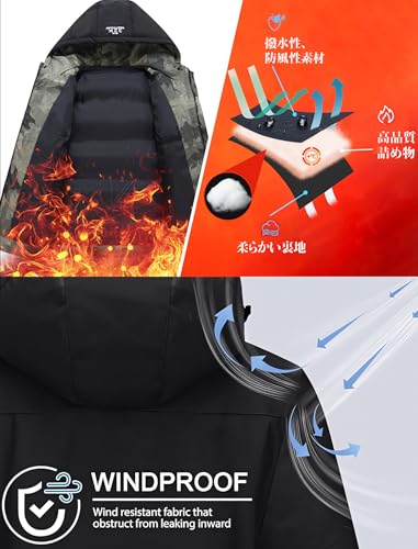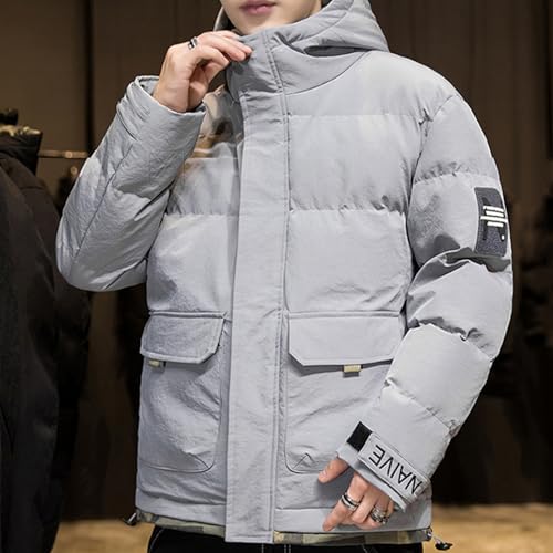 [Kayiyasu] ダウンジャケット メンズ カジュアル 冬服 厚手ジャケット 防寒着 フード付き アウター アウトウェア 大きいサイズ 暖かい 迷彩 グレー(L グレー)