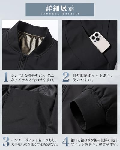 [Kayiyasu] ダウンジャケット メンズ ジャケット アウター ジャンパー ブルゾン 大きいサイズ 中綿 アウトドア 作業 防寒 軽量 無地 暖かい 秋冬 カジュアル(S ブラック)