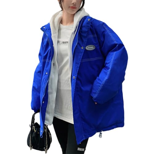 [Kayiyasu] ダウンジャケット レディース 重ね着風 フード付き 中綿 コート カジュアル ショート丈 防風 防寒着 普段使い ゆったり 体型カバー 厚手 秋冬 (XL, ブルー+ホワイト)