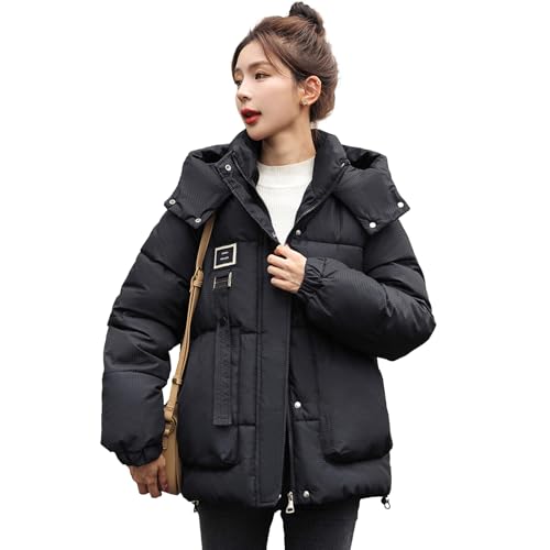[Kayiyasu] ダウンジャケット レディース ダウン ジャケット ダウンコート 中綿ジャケット ショート丈 アウター 防寒着 ゆったり 秋冬 暖かい カジュアル 通勤 通学(M ブラック)