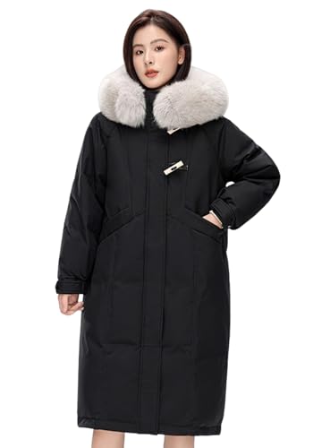 [Kayiyasu] ダウンジャケット レディース 中綿コート アウター 冬 ロング丈 暖かい 防寒 防風 S-XL ファー付き 韓国風 可愛い シンプル(S ブラック)