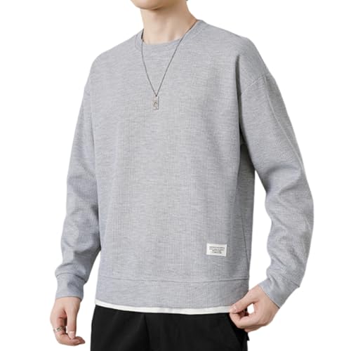 [Kayiyasu] トレーナー メンズ 長袖 無地 スウェット 重ね着風 ゆったり 丸首 6色展開 プルオーバー オーバーサイズ tシャツ カジュアル 柔らかい 秋服 シンプル トップス 快適 人気 春 秋 冬 服 かっこいい(M グレー)