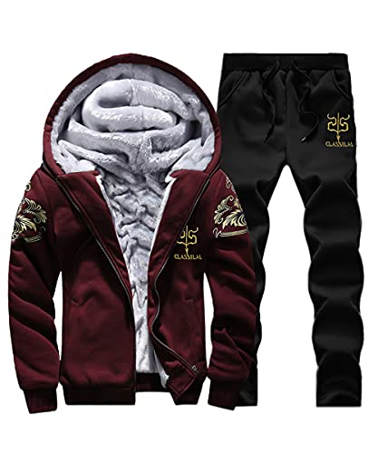 [amatsu] ジャージ 上下 メンズ 長袖 セットアップ ルームウェア 上下セット スポーツウェア メンズ 裏ボア 秋 冬 ゆったり カジュアル 大きいサイズ トレーニング ウエア レッド S