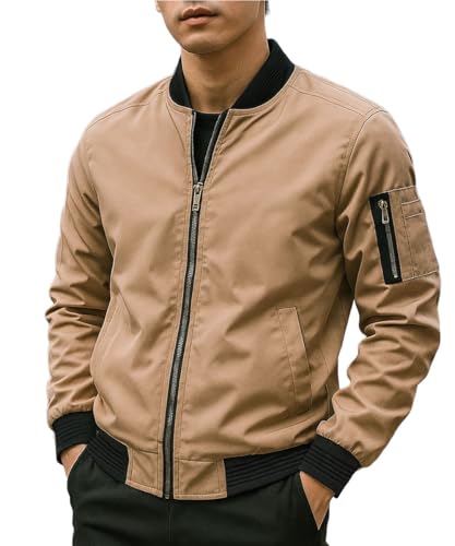 [amatsu] MA-1 ジャケット メンズ ライトアウター ブルゾン 細身 シンプル 無地 ミリタリー アウター 春 秋 冬 カジュアル 通勤 通学 大人 XL ベージュ