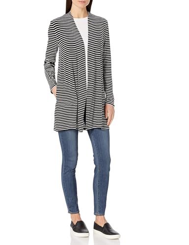 [Amazon Essentials] カーディガン 前開き 長袖 レディース ブラック ホワイト ボーダー M