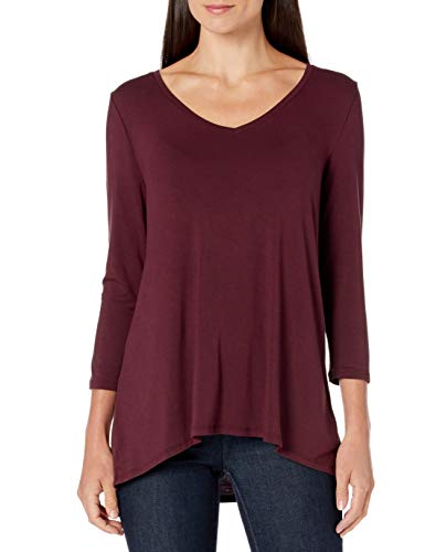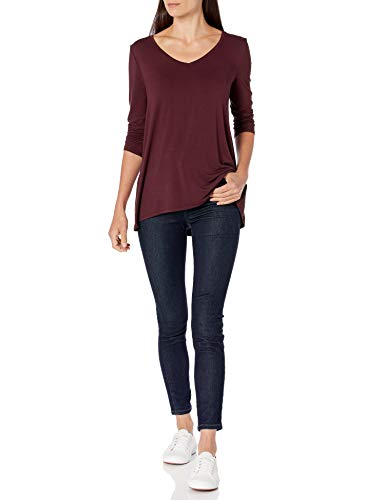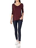 [Amazon Essentials] 2枚組 Aラインシルエット Tシャツ Vネック 七分袖 レディース ブライトピンク/バーガンディ M