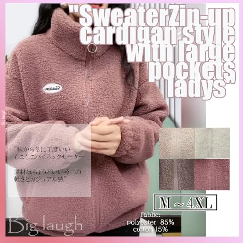 [Big laugh] トップス ボア ジップ アップ ハイ ネック 長袖 セーター ニット カーディガン 秋 冬 レディース (ホワイト, 2XL)