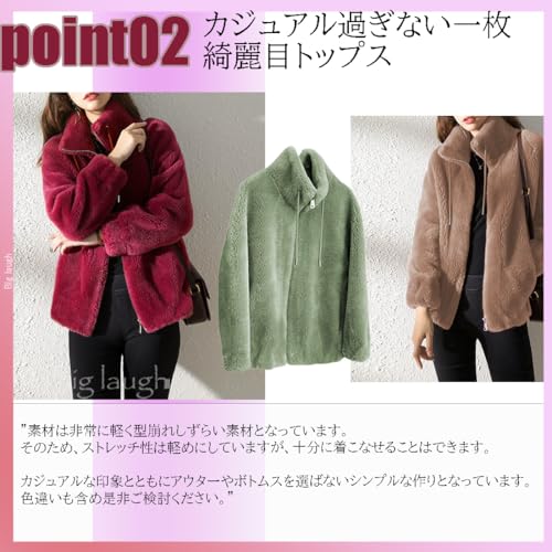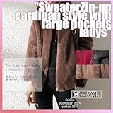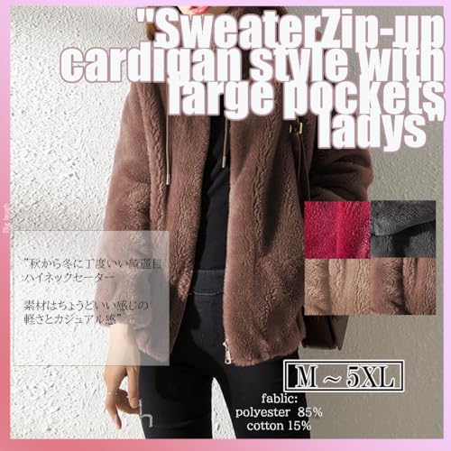 [Big laugh] トップス ボア 綺麗 ジップ アップ ハイ ネック 長袖 セーター ニット カーディガン レディース (コーヒー, L)