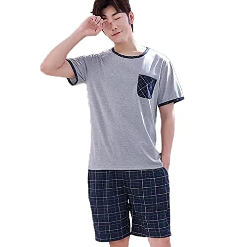 [COCO JOIE] パジャマ メンズ 夏 綿 上下セット ルームウェア 半袖 ショートパンツ ゆったり 肌に優しい 薄手 快適 (XXL, ネイビー)