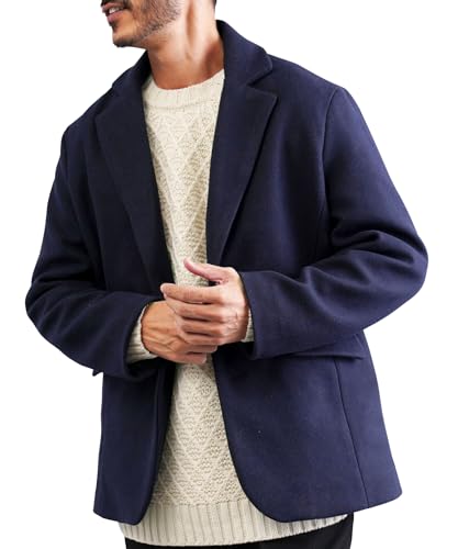 [JIGGYS SHOP] ジギーズショップ テックメルトンテーラードジャケット|L ネイビー ライトアウター 秋服 冬服 暖かい 裏フリース シンプル 大人 伸縮性 ストレッチ ビジネスカジュアル ビジカジ 着回し 定番 ベーシック 動きやすい 黒