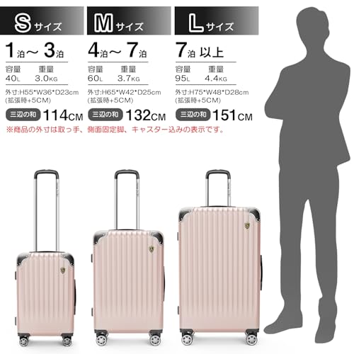 New Tripのスーツケースは、5cmの拡張で容量が20%アップする大容量設計。土産物が増えても安心です。高品質なABS・PC混合ボディと信頼のYKKファスナーで耐久性に優れています。