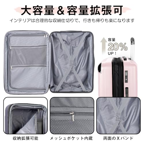 [New Trip] スーツケース キャリーケース 拡張機能付き 機内持ち込み 軽量 大型 S/M/Lサイズ キャリーバッグ 耐衝撃 大容量 ファスナータイプ 静音 ダブルキャスター TSAロック 海外 旅行 ビジネス 出張 (ピンク、Sサイズ/機内持ち込み:2~3泊/40L)