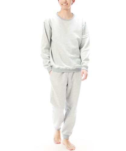 [ON NISHIKI] メンズ スウェット 上下セット 裏起毛 冬 長袖 長ズボン 綿混 無地 ルームウエア 部屋着 (ライトグレー:5/M/77325)