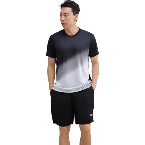 [Running sheep] スポーツウェア メンズ 上下セット 運動服 半袖 Tシャツ + ハーフパンツ トレーニング セットアップ ゆったり tシャツ ショットパンツ 大きいサイズ ジャージ 上下 セット 冷感速乾 TZ2408blk-wh-M