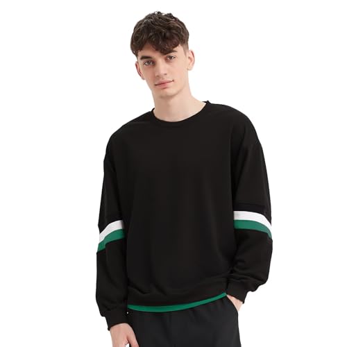 [Sillictor] トレーナー メンズ スウェットシャツ クルーネック ゆったり 長袖 大きいサイズ カジュアル Overサイズ 秋服 DB613blk-XL(日本サイズM)