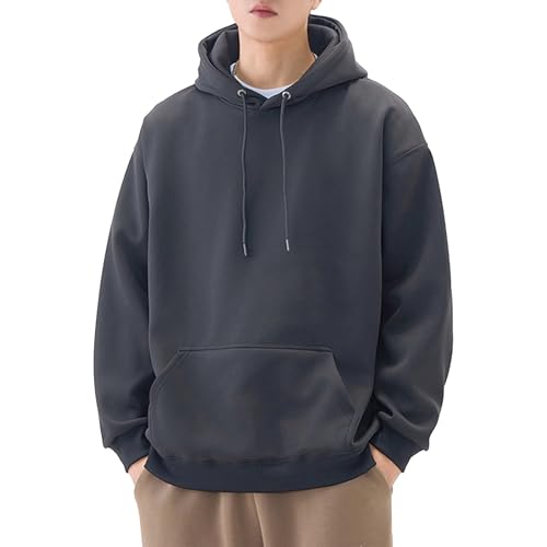 [uptoyou] パーカー メンズ 秋冬服 裏起毛 14.8オンス 綿 大きいサイズ 無地 スウェット レディース 長袖 厚手 ゆったり トップス プルオーバー 男女兼用 通勤通学 L-5XL (L ダークグレー(裏起毛))