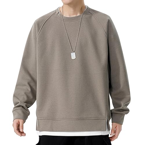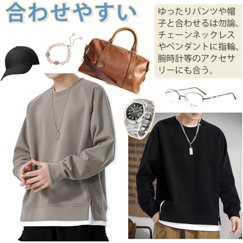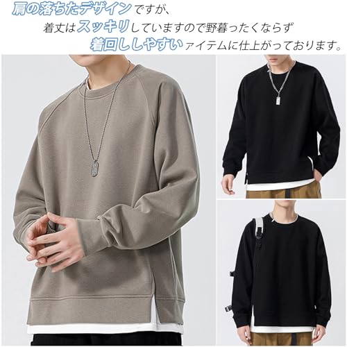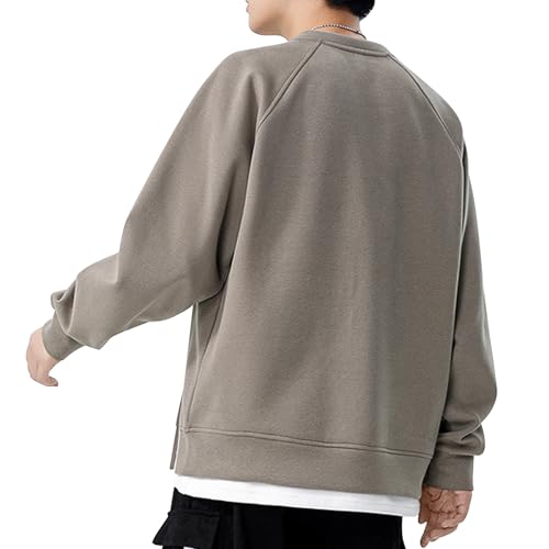 [Wisdom Wolf] スウェットシャツ メンズ 長袖 無地 丸首 ゆったり シルエット カジュアル 秋冬服 おしゃれ 大きいサイズ 暖かい GREY-M