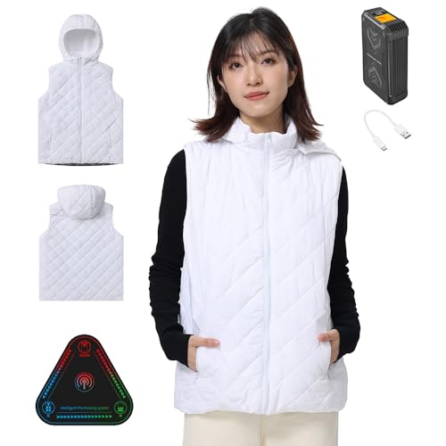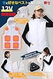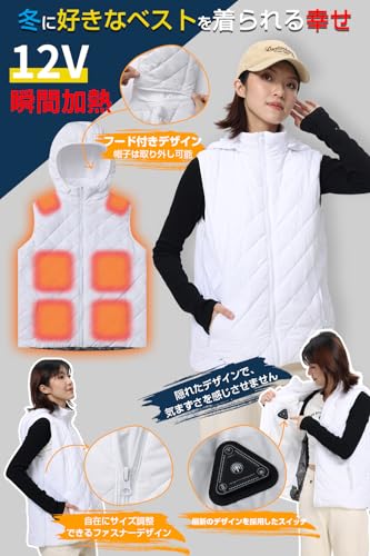 [Wotivon] (人気製品の次世代モデル) 電熱ベスト 前後15箇所発熱 12V/DC給電式 ヒーターベスト 【電気用品安全法・PSE承認 専用高性能IC 30000mAhバッテリー付き】静電気防止の生地 男女兼用 S-3L (JP, アルファベット, S, ホワイト(帽子あり))