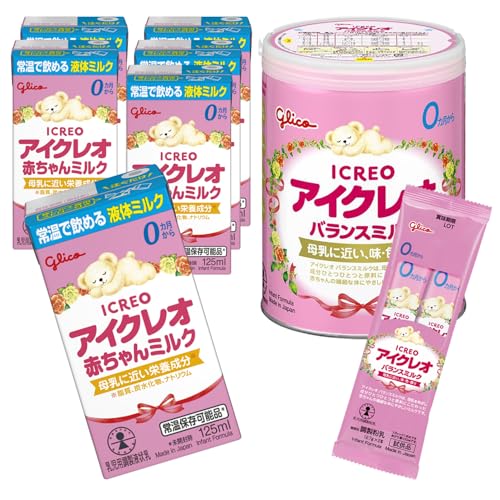 【お試しセット】アイクレオ バランスミルク800g (おまけスティック付) + 赤ちゃんミルク6本 江崎グリコ 液体ミルク 粉ミルク 哺乳瓶 乳児 ベビー 0ヵ月~1歳頃