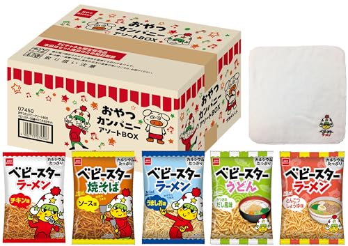 【公式】ベビースターラーメンミニ 5種アソートBOX ミニタオル付 1箱 | 駄菓子 業務用 イベント利用 景品にも 大人買い チキン味 焼そば味 うましお味 とんこつしょうゆ味 かつおのだし風味 おつまみ おやつ ローリングストック おやつカンパニー