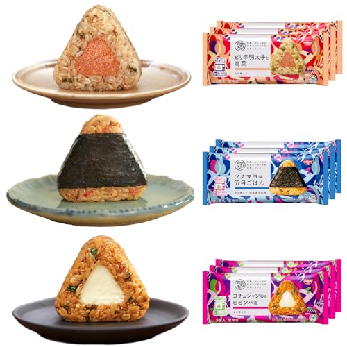 ピリ辛明太子と高菜、ツナマヨ味五目ごはん、コチュジャン香るビビンバ風の3種類を各3個ずつ楽しめる満足セット。