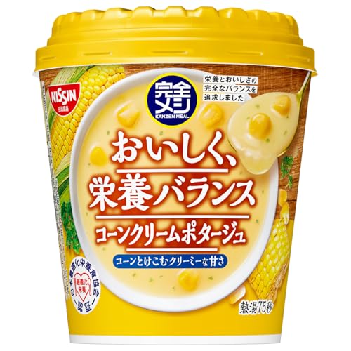日清食品の「完全メシ」シリーズから、コーンクリームポタージュが登場。33種類の栄養素をバランス良く配合し、