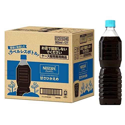 【 コーヒー ペットボトル 】ネスカフェ エクセラ ボトルコーヒー 甘さひかえめ ラベルレス 900ml×12本,微糖,アイスコーヒー