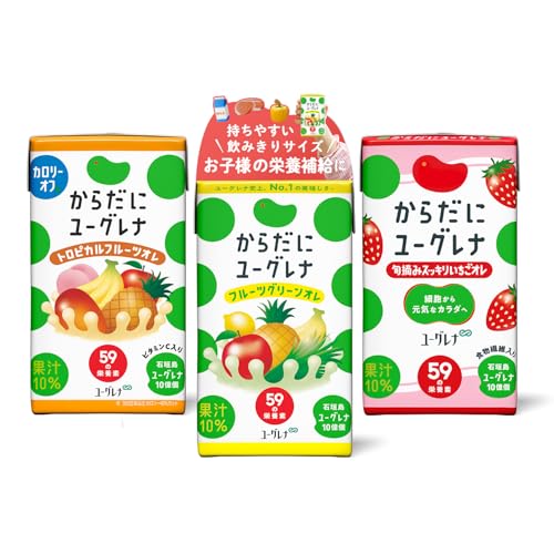 からだにユーグレナ ドリンク 3種類アソートセット 24本 ユーグレナ フルーツグリーンオレ 旬摘みスッキリいちごオレ トロピカルフルーツオレ カロリーオフ 野菜ジュース フルーツジュース