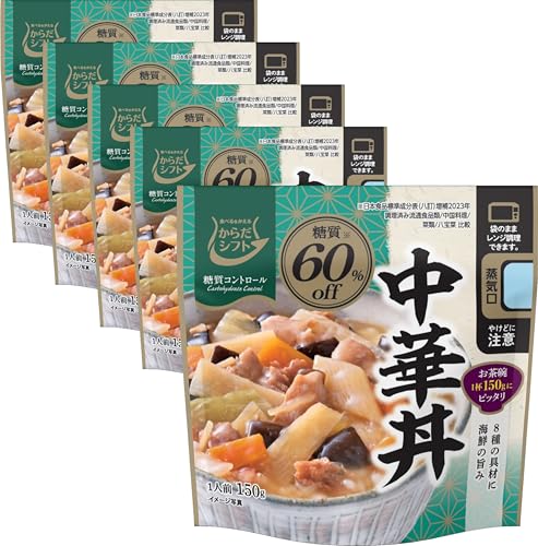 からだシフト 糖質コントロール 中華丼 (150g ×5個) 糖質60%オフ※日本食品標準成分表(八訂)増補2023年調理済み流通食品類/中国料理/菜類/八宝菜 比較 (8種の具材入り) 一人暮らしの方にも (簡単調理) 電子レンジ対応パウチ 時短調理