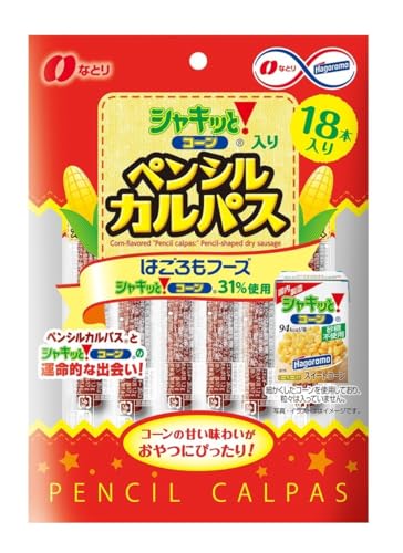 なとりの「シャキッとコーン入りペンシルカルパス」は、国産鶏肉を使用した細長いペンシルタイプのカルパスです。