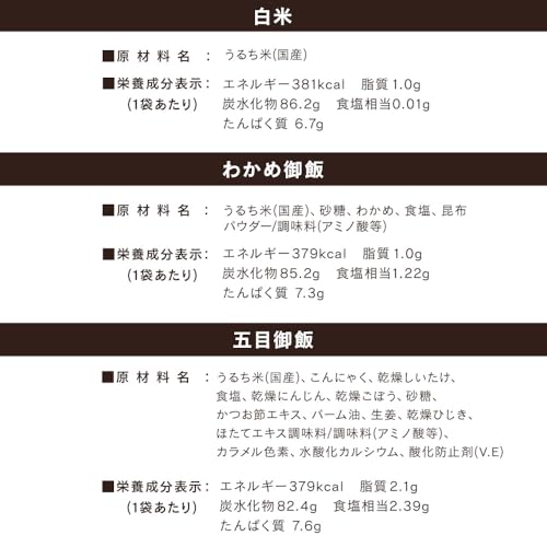 白米、わかめご飯、五目ご飯の3種類10食がセットに。