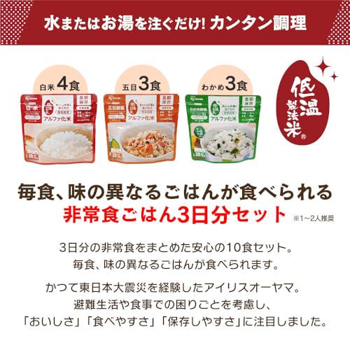 アイリスオーヤマ(IRIS OHYAMA) 【防災は3日分が基本】アイリスオーヤマα化米3日分セット 白米4食 わかめ3食 五目3食 非常食