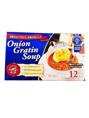 お湯を注ぐだけで本格的なオニオングラタンスープが楽しめる乾燥スープです。