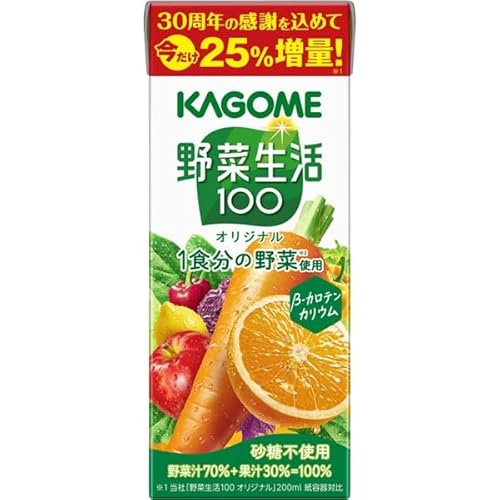 カゴメ 野菜生活100 オリジナル 250ml紙パック×24本(ブランド発売30周年記念25%増量品 砂糖不使用 βーカロテン カリウム 常温保存可能)