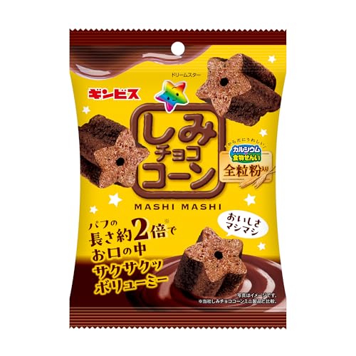 ギンビスの「しみチョココーンMASHIMASHI」は、コーングリッツと小麦全粒粉の素朴な香ばしさが魅力です。