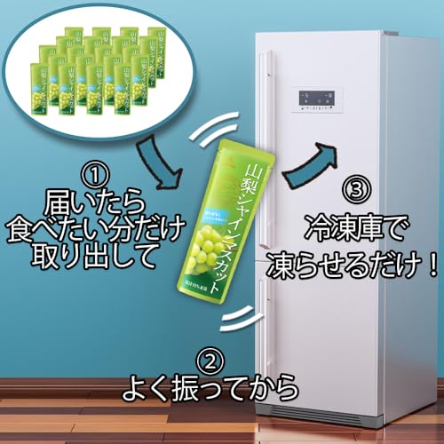 山梨県産のシャインマスカットを使用した贅沢なアイスバーです。 上品な甘さと香りが特徴の「ぶどうの女王」をそのままに、 冷やしてドリンクのように、凍らせてシャーベットとしてお楽しみいただけます。 産地限定の特別感と、80g×20本のたっぷりサイズが魅力です。