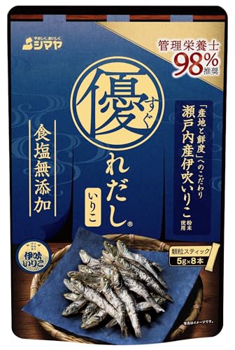 シマヤの「優れだし 和風 いりこ」は、食塩無添加にこだわった本格的な顆粒だしです。