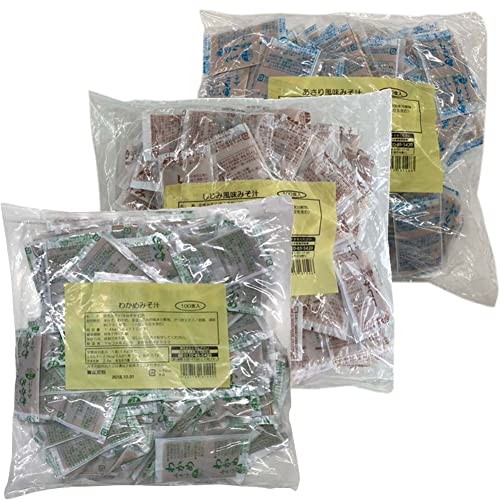 マルコメの業務用生みそ汁100食セットは、わかめ、あさり、しじみの3種アソートです。
