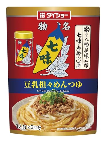 ダイショーの「八幡屋礒五郎七味唐がらし使用 豆乳担々めんつゆ」は、豆乳のまろやかさと担々麺の辛さが絶妙に調和したつゆです。
