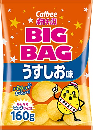 カルビーの定番、ポテトチップスうすしお味が大容量ビッグバッグで登場です。160g袋が12袋入ったたっぷりサイズで、パーティーや大勢での集まりに最適です。