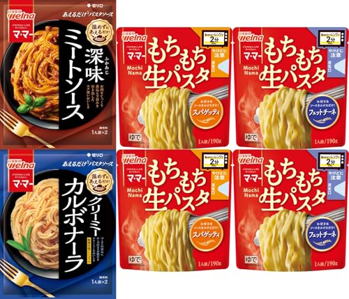 マ・マー レンジで2分 もちもち生パスタ(スパゲッティ2食分・フェットチーネ2食分)&マ・マー あえるだけパスタソース 2種類セット(ミートソース2人前、カルボナーラ2人前)食べ比べ 【セット買い】