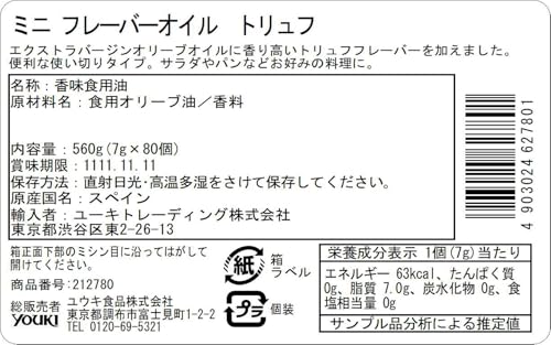 ユウキ食品のミニフレーバーオイル トリュフは、7gの個包装が80個入った便利な使い切りタイプです。