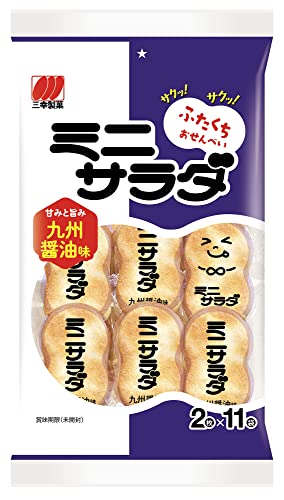三幸製菓の「ミニサラダ 九州醤油味」は、サクッとした食感がやみつきになるお菓子です。