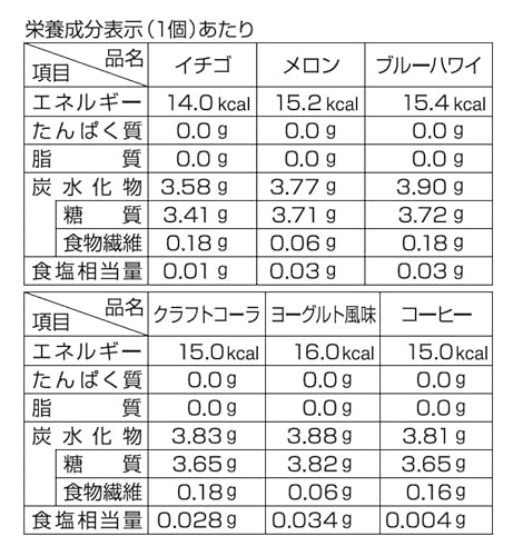 各味とも果汁やコーヒーパウダーを使用し、甘さ控えめに仕上げられています。