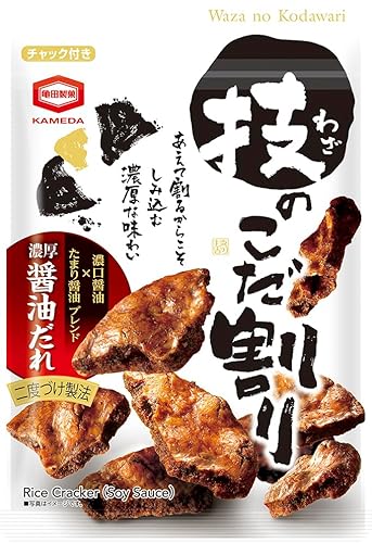 亀田製菓の「技のこだ割り 濃厚醤油」は、割れた堅焼きせんべいに特製醤油だれをしみ込ませた逸品です。