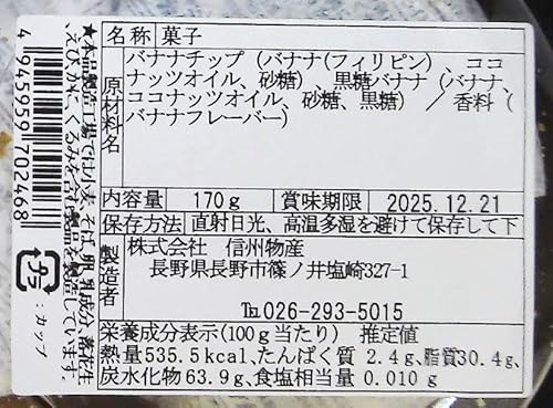 信州物産のミックスバナナチップスは、プレーンと黒糖の2種類を贅沢に詰め合わせた170gのカップ入りです。