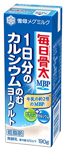 雪印メグミルクの「毎日骨太MBP」は、1本で1日分のカルシウム680mgを摂取できるのむヨーグルトです。