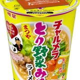 明星のチャルメラと宮崎辛麺のコラボレーション。 汁なしカップ麺で、焙煎唐辛子の香ばしい辛さが特徴です。