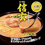 札幌ラーメン信玄のW味噌の濃厚スープ、久留米大砲ラーメンのこってりとんこつスープ、