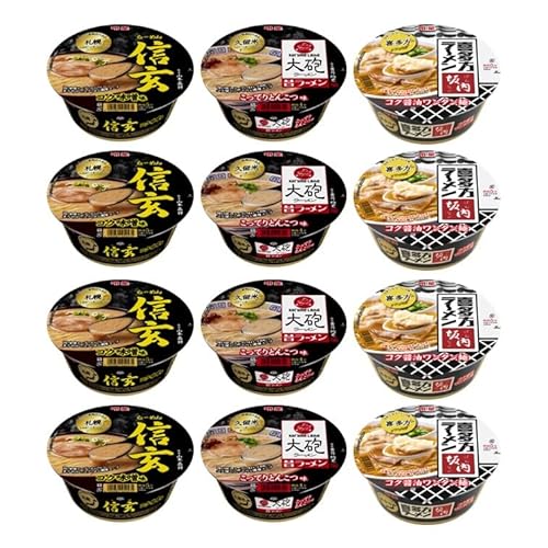 明星 匠の名店 3種(札幌らーめん信玄 コク味噌味、大砲ラーメン こってりとんこつ味、喜多方ラーメン坂内 コク醤油ワンタン麺)食べ比べアソート お店の味わいをお家で 12食【セット買い】